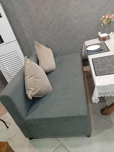Диван-банкетка для кафе/ресторана, модульный - Тип: пристенный диван с высокой спинкой из трех мягких секций - Обивка: износостойкий кожзам/винил, цвет — светло-оливковый - Основание: массив/шпон ...