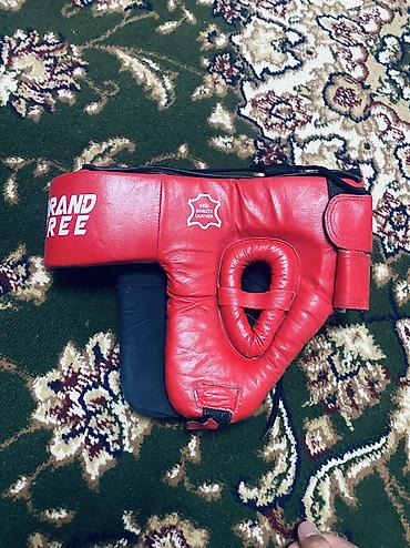- Боксерский/травмобезопасный шлем из натуральной кожи (маркировка High Quality Leather), красный, с утолщенной лобной зоной, защитой подбородка и застежкой на липучке/шнуровке для подгонки.