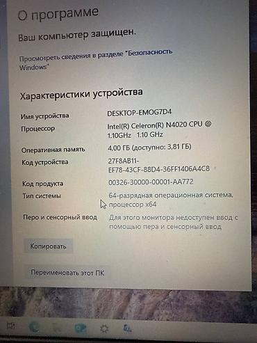 - Процессор: Intel Celeron N4020, 2 ядра, 1.10 ГГц