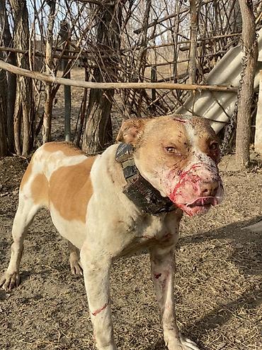 Американский питбультерьер, кобель, крупного и мощного формата. Окрас белый с рыжими пятнами на голове и ушей, уши купированы. Атлетичное телосложение, широкая грудь, крепкие лапы, выраженная муску...