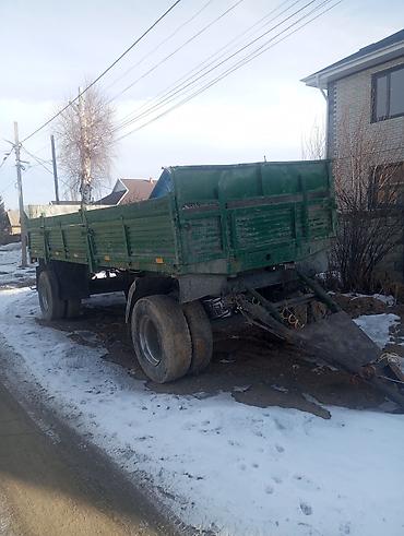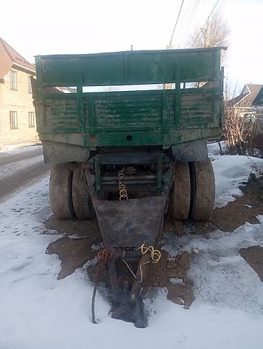 Двухосный прицеп-самосвал сельскохозяйственный, зелёный бортовой.