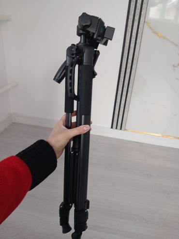 Универсальный штатив-монопод черного цвета, предназначенный для использования со смартфонами и камерами. Он может функционировать как селфи-палка или как стационарный штатив, обеспечивая устойчивос...