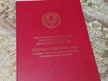 Земельный участок с госактом (Кыргызская Республика) - Документы: государственный акт о праве частной собственности на земельный участок (красная папка). - План участка прилагается: указаны границ...