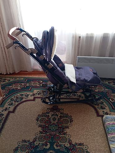 Детские санки-коляска с колесиками и регулируемой спинкой.
