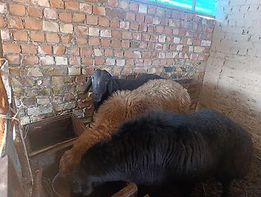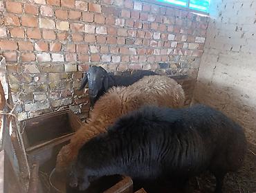 Овцы мясо‑шерстного направления, черного и рыже‑бурого окраса, с длинными свисающими ушами. На фото — несколько взрослых особей в стойле, ухоженные, на свободной привязи, с доступом к поилке и кормушкам. Подходят для: