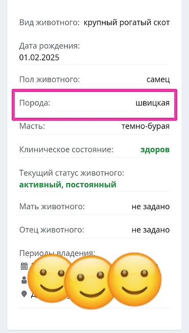 Бык молочно-мясного направления. Мать привезена из Чехии с племенной картой. Осемененен семенем быка PREMIANT. Характер спокойный, не бодается, не пинает, комолый. Кличка Симба. На мясо не продаёт...