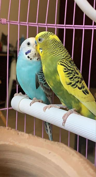 Продаются неразлучники 🦜 3 попугая: 2 зелёных и 1 жёлтый. Продаются вместе с просторной клеткой (метр высоты). В клетке есть всё необходимое: • 4 кормушки • поильник • купалка • деревянные жердочк...