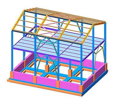 - 3D BIM-модели каркаса: колонны, фермы/ригеля, связи, ригели покрытия и перекрытий, узлы и опорные части.