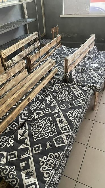 - Сиденья/скамьи деревянные, съемные матрасы с этническим рисунком.