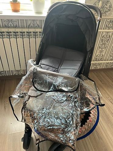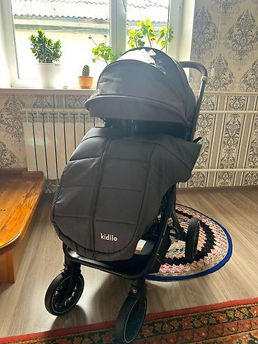 - Комплектация на фото: прозрачный дождевик, тёплый чехол‑накидка на ножки с логотипом kidilo.