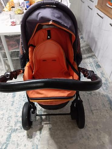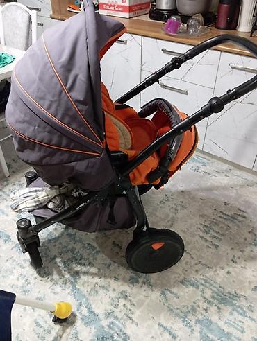 Прогулочная коляска с люлькой-переноской (оранжево‑серый цвет)