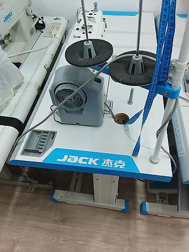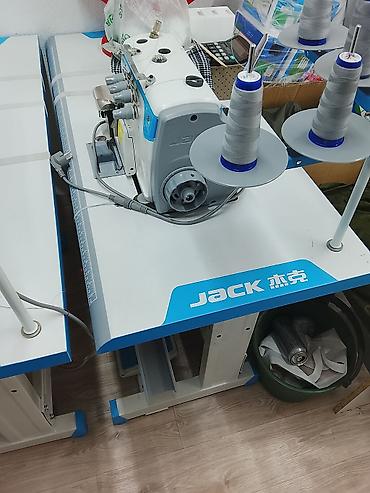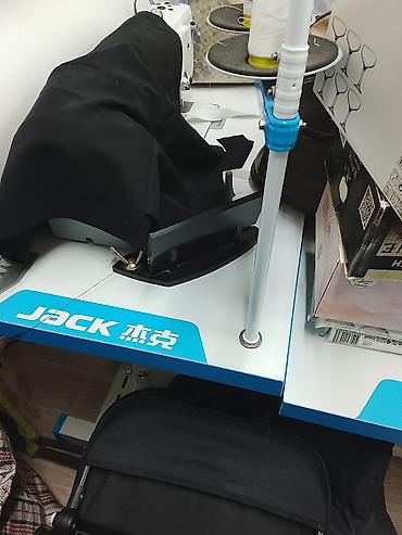 В комплекте на фото: головка оверлока JACK, сервомотор, промышленный стол с металлической тумбой, стойка для конусов.