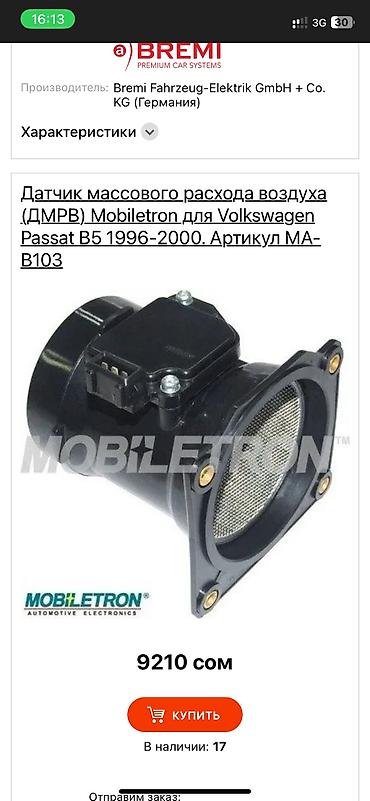 Датчик массового расхода воздуха (ДМРВ) для автомобилей VAG/азиатских и европейских моделей. Особенности и назначение: - Измеряет объем воздуха, поступающего во впуск, для корректной работы ЭБУ и ...