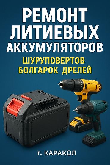 В городе Каракол производим ремонт аккумуляторов от всех видов Электро инструментов быстро и качественно. Проводим следующие работы: -Диагностика АКБ -Замена ячеек АКБ -Балансировка ячеек АКБ -Пере...