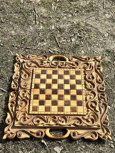Резная деревянная доска 3 в 1: шахматы