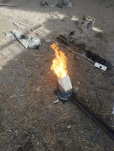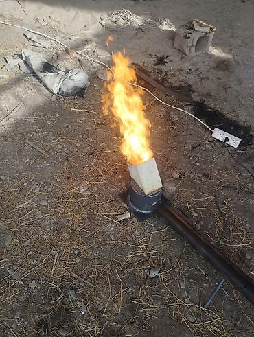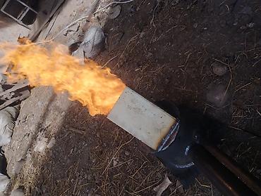 Отработка тепловая пушка/горелка самодельного типа для наружных работ.