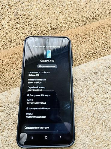- На фото показан реальный экран с пунктом «Сведения о статусе» и разделом «Сведения о телефоне: Galaxy A16».