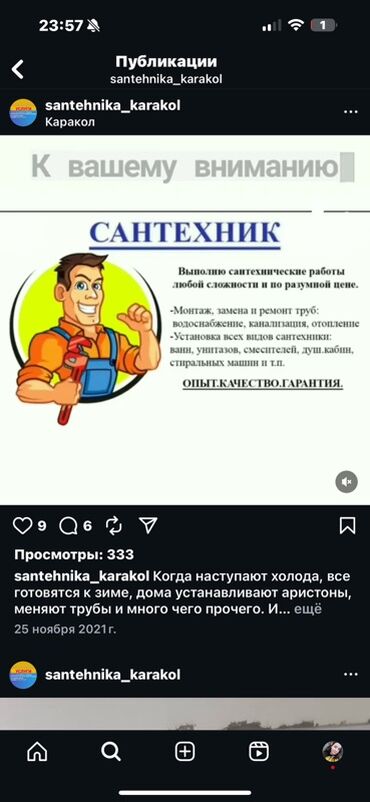 Больше 6 лет опытаСантехнические услуги в г. Каракол.