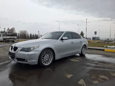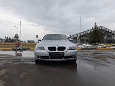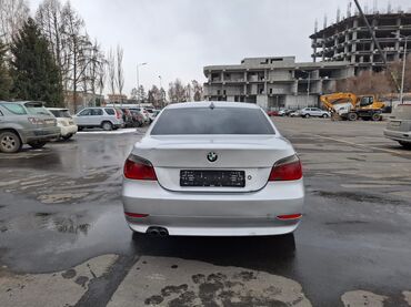 BMW 5 Series (E60) седан, серебристый цвет. Основное: - Кузов: 4-дверный седан, спортивный обвес M‑стиля, двухствольный выхлоп, тонированные стекла. - Оптика: ксеноновые/линзованные фары с фирменн...