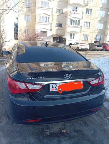Hyundai Sonata, седан, темно-синий/черный цвет кузова. Обновленный фирменный дизайн с хромированной решеткой радиатора и вытянутой оптикой. Задняя часть с логотипом Sonata, шильдиком 2.0 и хромированной вставкой на крышке багажника.