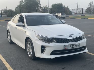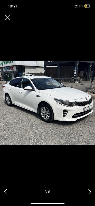 Kia Optima — белый седан бизнес-класса. Основные особенности: - Эффектная внешность: фирменная решётка радиатора, агрессивные бампера, светодиодные ДХО и фары с характерной подсветкой. - Кузов: 4-...