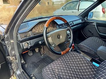 - Салон: тканевые чехлы на сиденьях, классическая торпедо W124, трехспицевый руль с деревянными вставками, механическая коробка передач, ручные стеклоподъемники, резиновые коврики.