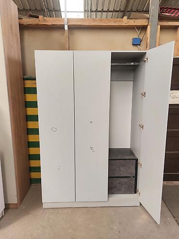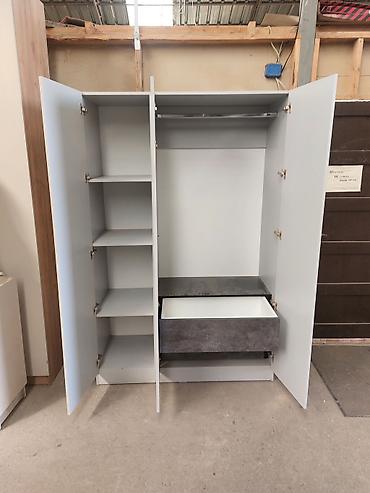Подойдет для спальни, прихожей или детской: сочетает отделение для длинной одежды, полочное хранение и ящики для мелочей. Универсальная светло-серая палитра легко впишется в современный интерьер.