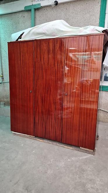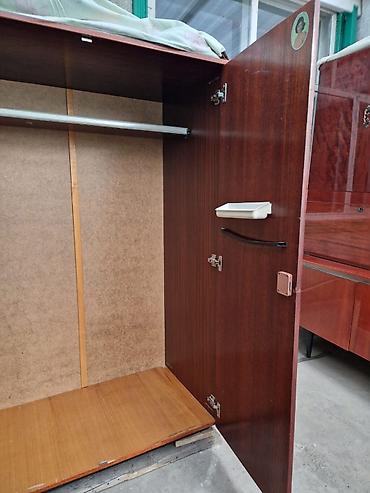 - Фурнитура: петли карточного типа, металлические ручки, замочные скважины на крайних дверях.