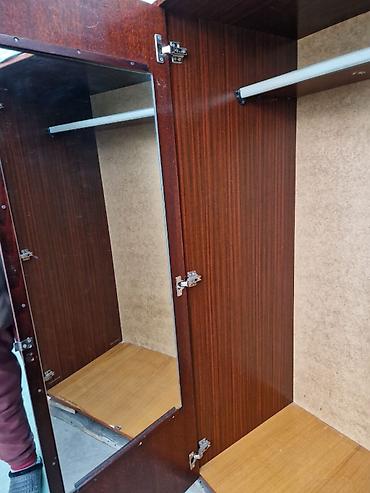 - Фасад: три распашные двери с вертикальным рисунком, центральная створка с зеркалом внутри.