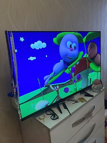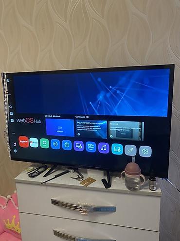 - Диагональ 43", тонкие рамки, ножки‑подставки.