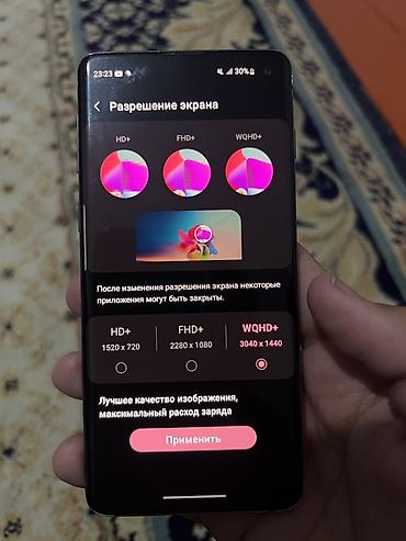 - Экран 6.1", Dynamic AMOLED с отверстие под фронтальную камеру; поддержка изменения разрешения: HD+ (1520×720), FHD+ (2280×1080) и WQHD+ (3040×1440).