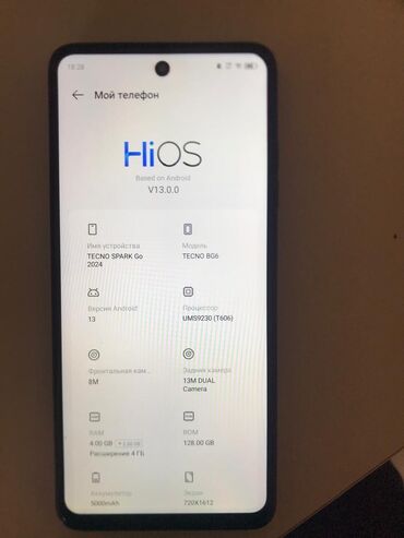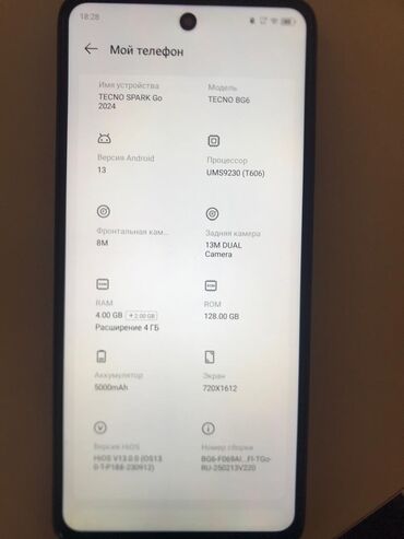 СРОЧНО!!Смартфон TECNO SPARK Go 2024 (модель TECNO B06) работает на базе Android 13 с оболочкой HiOS V13.0.0. Оснащен 4 ГБ оперативной памяти (с возможностью расширения до 4 ГБ) и 128 ГБ встроенной памяти. Основная камера двойная на 13 МП, фронтальная камера 8 МП. Аккумулятор емкостью 5000 мАч обеспечивает длительное время работы. Дисплей с разрешением 720x1612 пикселей.