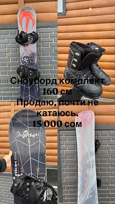 Текст на фото: «Сноуборд комплект 160 см. Продаю, почти не катаюсь. 15 000 сом».