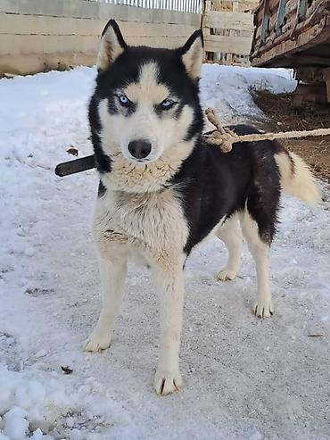 Сибирский хаски, кобель. Классическая окраска черно-белая с яркими голубыми глазами. Плотный двойной шерстный покров, выраженный подпушь — хорошо переносит холод. Пропорциональное сложение, высокая...