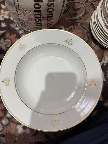Столовые советская тарелки из белой керамики с классическим
