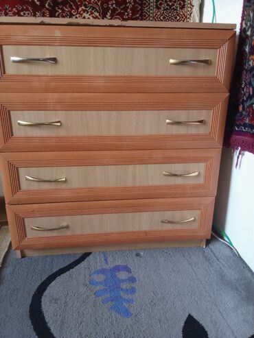 - Комод на 4 выдвижных ящика с металлическими ручками.