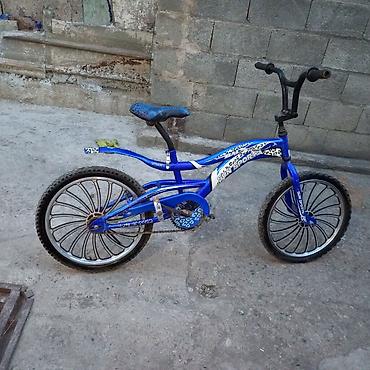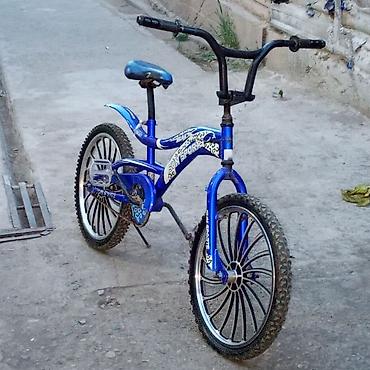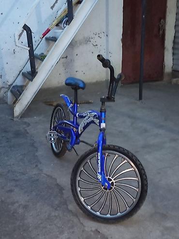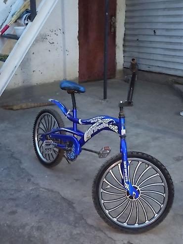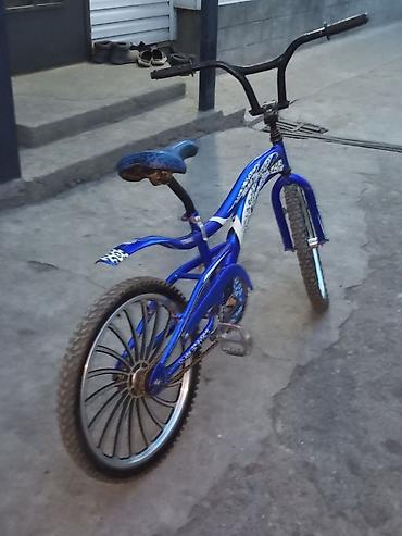 Детский/подростковый велосипед BMX-стиля - Рама: стальная, цвет синий с графикой. - Руль: высокий ВМХ-тип, широкие грипсы с заглушками. - Колёса: 20", обода стальные, спицы с цветными отражателями...