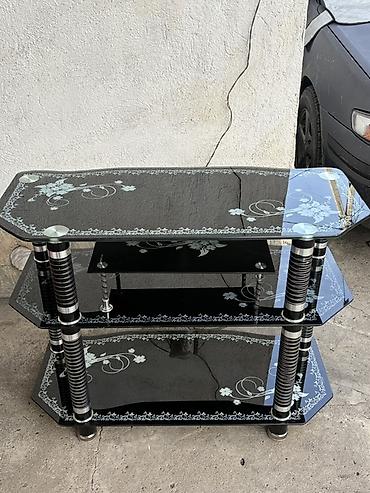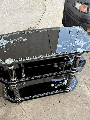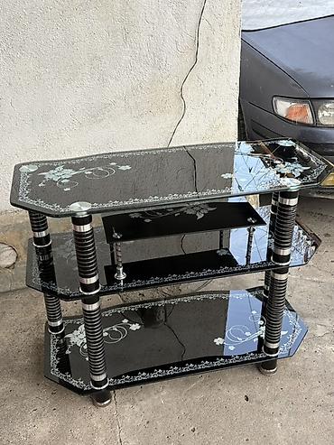- Материалы: закаленное стекло; опоры из металла с декоративными хромированными вставками.