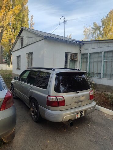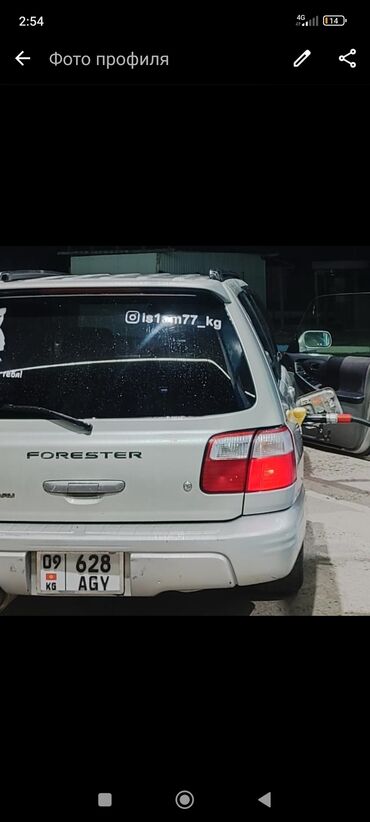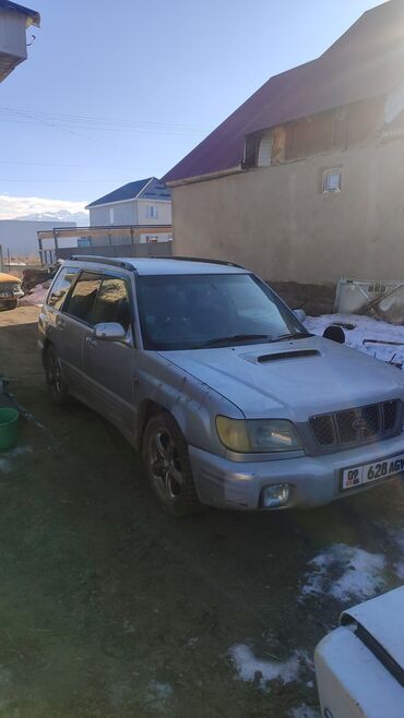 Subaru Forester (SF), серебристый универсал с турбированным капотом-воздухозаборником и полным приводом. Кузов универсал 5 дверей, рейлинги на крыше, тонированные задние стекла. Легкосплавные диски, дисковые тормоза по кругу, красные суппорты. Расширенный выхлоп с большим наконечником. Спойлер на пятой двери, дворник заднего стекла.