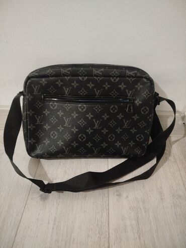 - На лицевой стороне — декоративные вертикальные кожаные ремни с металлическими пряжками и небольшая табличка с логотипом LV.