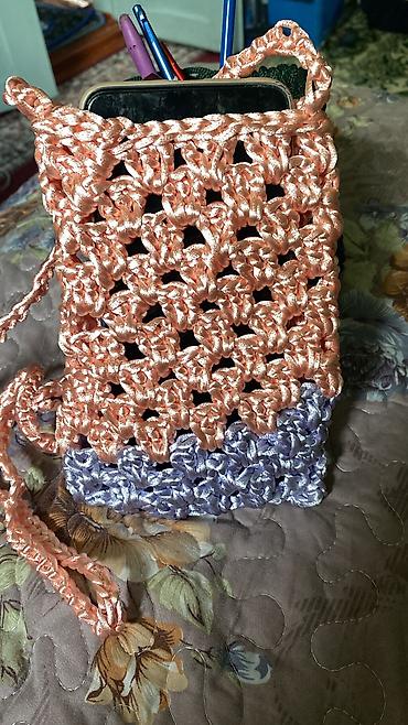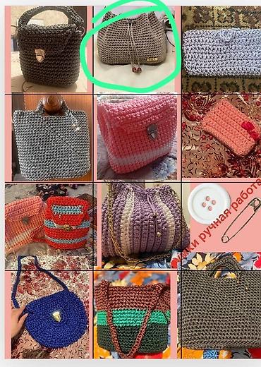 Набор ручных сумочек и аксессуаров из бусин - Изделия из мелких пластиковых жемчужных бусин, плетение вручную. - В комплекте несколько моделей: 1) Небольшая плоская сумочка на длинном плетёном ...