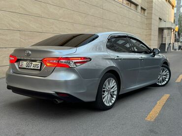 Toyota Camry XLE, серебристый седан бизнес-класса.