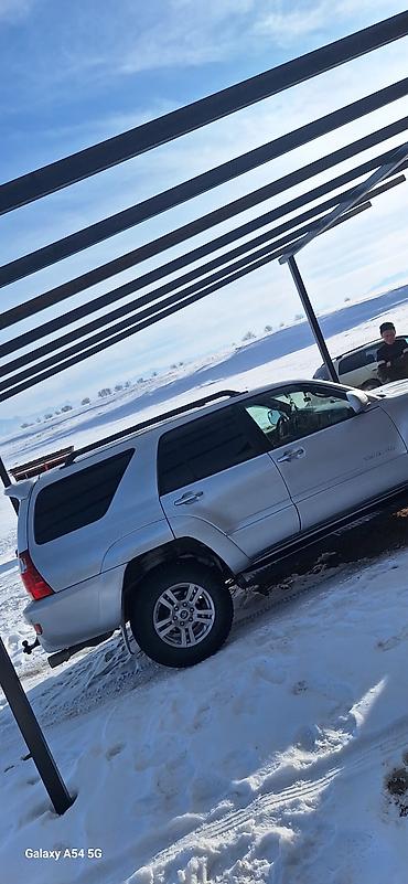 Toyota 4Runner (поколение N210), серебристый цвет, кузов SUV 5‑дверный. Основные характеристики и оснащение: - Полный привод - Автоматическая коробка передач - Бензиновый двигатель (воздухозабор н...