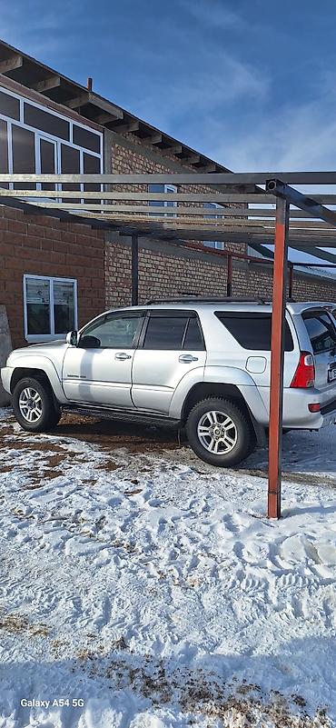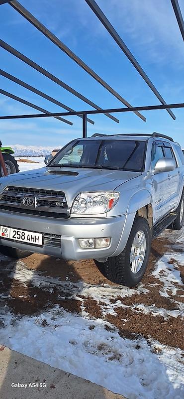 Toyota 4Runner (N210, рестайлинг) — серебристый внедорожник с рамной конструкцией и полным приводом. Основные особенности: - Кузов: 5‑дверный SUV, серебристый металлик, рейлинги на крыше, тонирова...