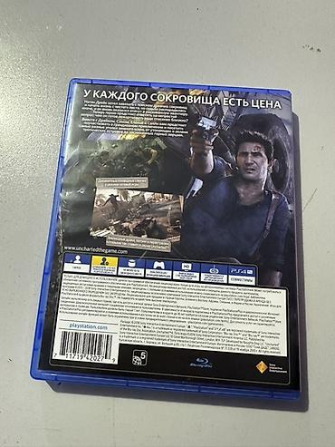 - На обороте: описание приключенческого сюжета о Нейтане Дрейке, скриншоты геймплея, особенности: динамичные перестрелки, исследование экзотических локаций, кинематографичные погони и головоломки.