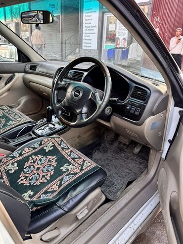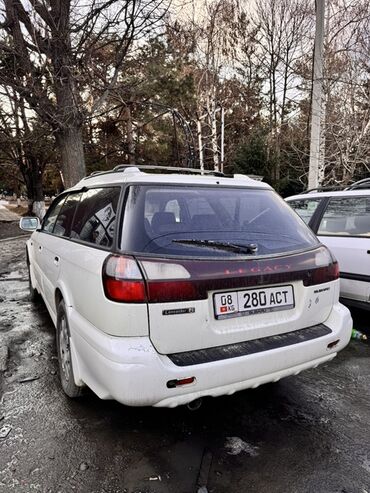 Задние эмблемы: Legacy, Lancaster 6, указывает на комплектацию с повышенным клиренсом для поездок по плохим дорогам. Просторный салон и большой багажник — удобен для семейных поездок и перевозки грузов. Номерные знаки KG на фото.