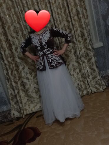 Национальный образ: базовое платье + шикарный черкен Можно носить по отдельности - Длинное платье в пол с акцентом на талию - Цвет - молочно‑белый - Длинный чепкен украшенный камнями, стразами ...