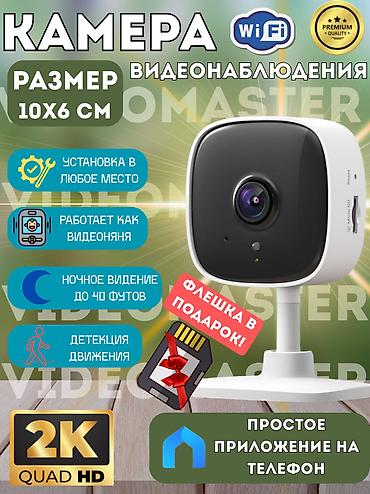 Wi‑Fi камера видеонаблюдения 2K Quad HD (10×6 см)