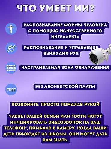 - Встроенный ИИ: распознавание фигуры человека, настраиваемые зоны обнаружения, управление жестами (взмах рукой).