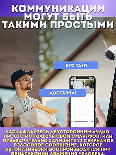- Двусторонняя связь: говорите через смартфон или используйте заранее записанное 10‑секундное голосовое сообщение, которое автоматически воспроизводится при обнаружении человека.